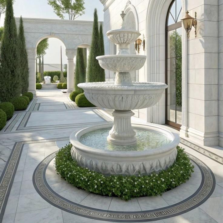 Whether you choose a classic tiered design or a modern minimalist shape, our fountains are made to enchant. As the water gently cascades over smooth marble, it creates a soothing ambiance that adds a royal touch to your surroundings.